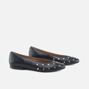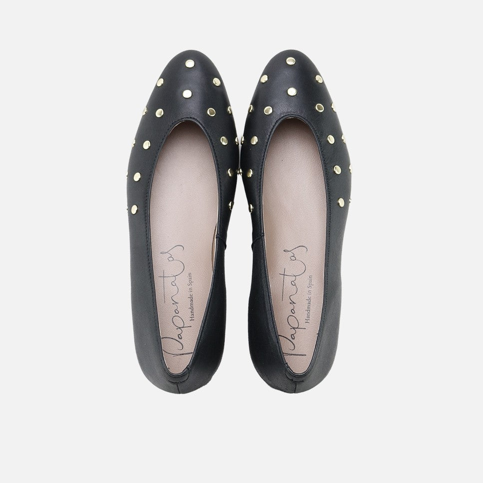Bailarina con tachas metálicos de la colección PAPANATAS. Un zapato de calidad de corte perfecto, realizado en nuestra horma de punta afilada que favorece a cualquier pie. Una de las novedades de esta colección, a la última pero muy ponible y comodísimo para el día a día. Hechas en piel vacuna de alta calidad con forro interior transpirable de piel. Un zapato de calidad que nos encanta para las niñas mas mayorcitas y para mujer. El combo perfecto sería hacer un niña y mamá iguales :) Diseñadas y fabricadas artesanalmente en Villena con materiales de alta calidad y con nuestra horma de bailarinas de punta, que a parte de estilizar el pie, favorece la seguridad y confianza de los pasos de niñas y mujeres. Con suela fina, flexible y antideslizante, pero resistente a cualquier superficie. Apuesta por el calzado de toda la vida, mejorado por los avances de tantos años de tradición, para las niñas de hoy en día. Calzado de calidad, es una inversión en sostenibilidad. Handmade in Spain with love.