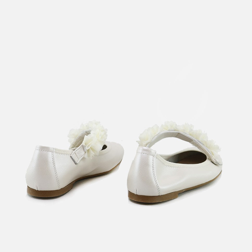 La bailarina con adorno más mona de la temporada. Una maravilla más de nuestra colección PAPANATAS, que viste los pies de niñas y mamás. Ideales para compartir modelo. Nos encantan para todo, desde ceremonia hasta para el día a día. Calzado de calidad, es una inversión en sostenibilidad. Hechas en piel ovina muy suave con planta transpirable de piel. Por su tira cruzada con cierre de velcro, se adaptan perfectamente al pie. Diseñadas y fabricadas artesanalmente en Villena con materiales de alta calidad y con nuestra horma de bailarinas tan bien valorada por su estilo y por conservar todas las características de ajuste y estabilidad, favoreciendo la seguridad y confianza de los pasos de niñas y mujeres. Con suela fina, flexible y antideslizante, pero resistente a cualquier superficie. Calzan pequeñas, elegir una talla más de la habitual. Handmade in Spain with love.