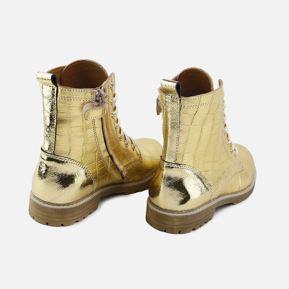 La bota Dakar de nuestra colección SIBARITAS, que calzará los pies más trendy esta temporada. La base de un patrón clásico perfecto realizado en la piel grabada color oro más bonita del mercado, que las actualiza y las convierte en una de las botas más codiciadas este invierno. Os encantarán por su diseño, pero sobretodo por su comodidad, cuidando sus pies para permitirle libertad pero protegiendoles en todo movimiento, superficie y temperatura. Hechas en piel grabada de alta calidad y forro de piel vacuna transpirable que evita el sudor y mantiene los pies en su temperatura ideal. Sus cordoneras brilli brilli le dan el toche chic, y su cierre con cremallera lateral interior les facilitará su uso. Diseñadas y fabricadas artesanalmente en Villena con materiales de alta calidad y con nuestra horma avalada tras mas de 30 años, amplia por delante para dejar espacio a sus deditos y perfecta para protegerles el talón. Con suela gruesa track de goma, flexible y antideslizante, pero resistente a cualquier superficie. Apuesta por el calzado de toda la vida, mejorado por los avances de tantos años de tradición, para los niños de hoy en día. Calzado de calidad, es una inversión en sostenibilidad. Handmade in Spain with love.