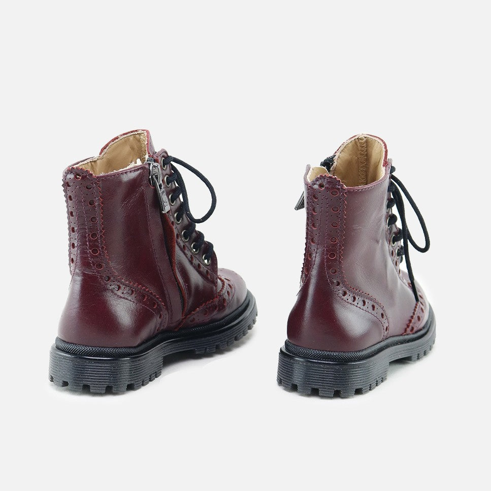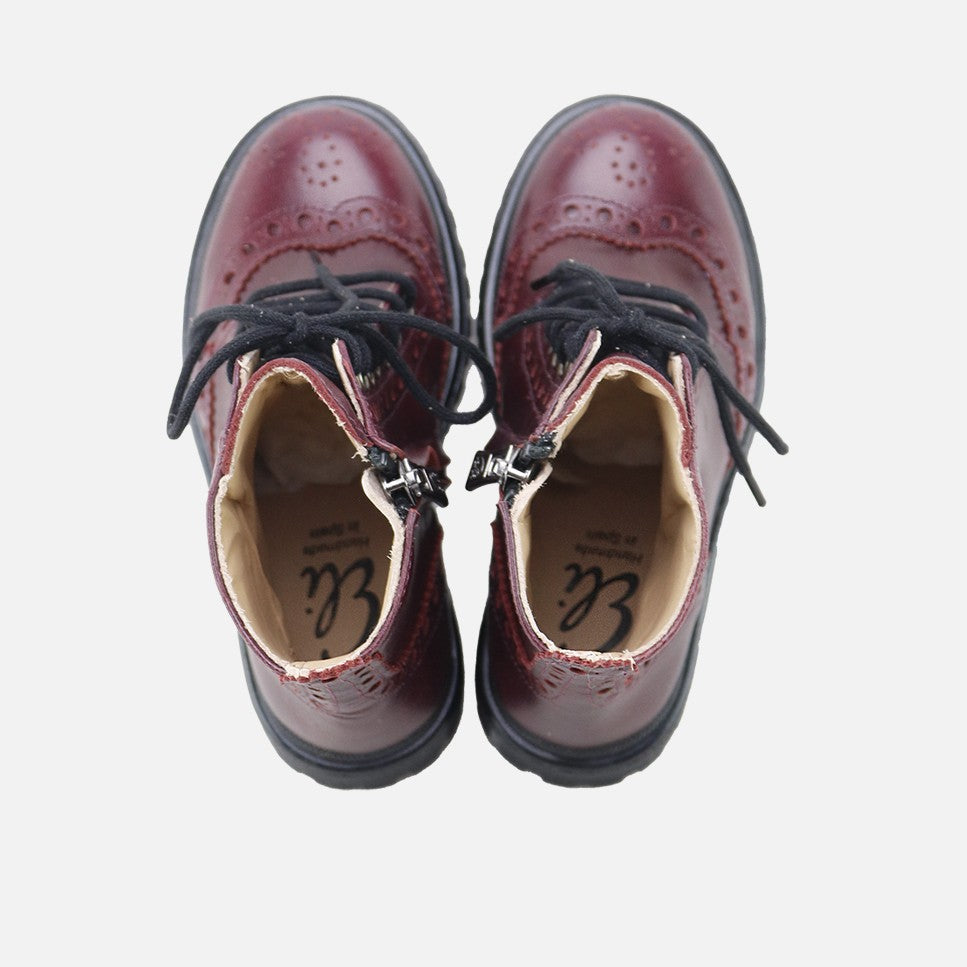 La bota clásica tipo oxford para los pies más SIBARITAS. Con estas botas de calidad exquisita, queremos que los pies Eli vayan a la última, pero que estén protegidos y cómodos, manteniendo el estilo que nos caracteriza. A primera vista, nos encanta por su estilo clásico, pero son sus piezas superpuestas y picados, las que dan el resultado de un modelo inmejorable. Realizadas en piel vacuna de alta calidad, piso grueso de goma y forro de piel vacuna transpirable que evita el sudor y mantiene los pies en su temperatura ideal. Son perfectas para un #mumanddaughter ideal! Su color y brillo, y su diseño con festones y picados les dan el toque perfecto. Con cordoneras de algodón al tono para ajustar, pero su cierre con cremallera lateral interior les facilitará su uso. Diseñadas y fabricadas artesanalmente en Villena con materiales de alta calidad. Apuesta por el calzado de toda la vida, mejorado por los avances de tantos años de tradición, para los niños y mujeres de hoy en día. Calzado de calidad, es una inversión en sostenibilidad. Handmade in Spain with love.