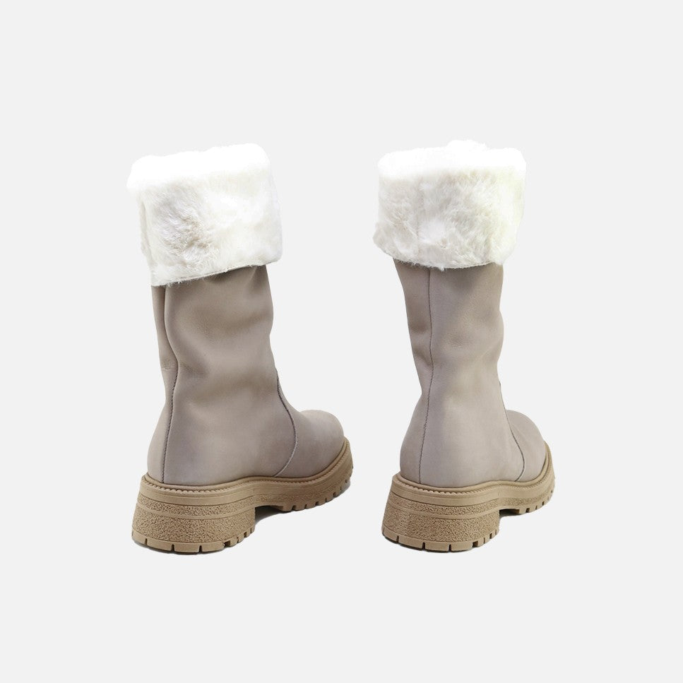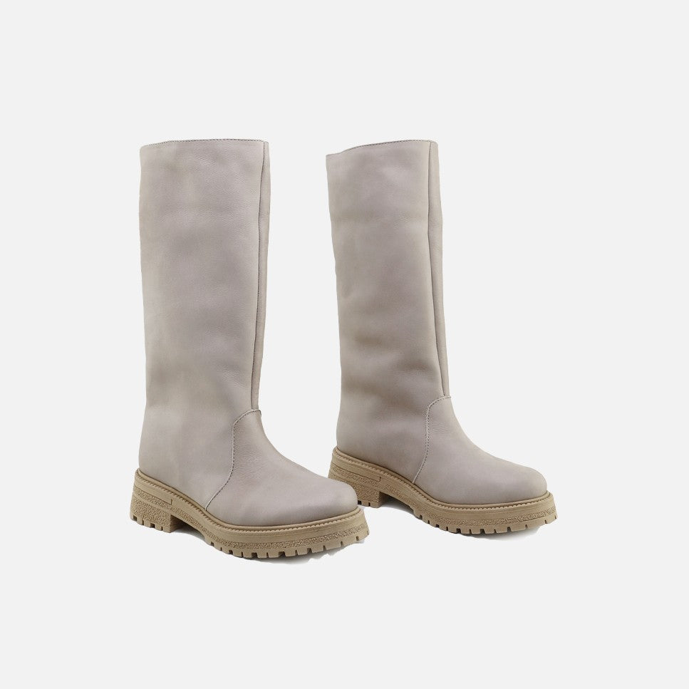 Con esta bota tan simple como especial, los días más fríos serán más llevaderos! De corte ancho sin cremallera para poder calzar como un calcetín, nos encantan tanto con pantalón como con falda. Su color tan ideal como combinable y la vuelta de pelo, para ponerla al gusto, harán que sean la guinda perfecta a cualquier look. Por su forro de pelito super suave y calentito no te las querrás quitar, y su piso de goma track las hacen perfectas en cualquier talla. Ideales para niña y mamá :) Cómodas, calentitas y bien calzadas en cualquier momento. Realizadas en piel vacuna de alta calidad con pelito de algodón muy calentito. Diseñadas y fabricadas artesanalmente en Villena con materiales de alta calidad. Con suela de goma, flexible y antideslizante, pero resistente a cualquier superficie.