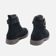 Botas de serraje de nuestra colección WATERPROOF. Poseen una membrana, que combina una gran ligereza y una alta impermeabilidad, que protege de los efectos del agua, el viento y el frío, y una eficiente transpirabilidad que facilita la evacuación de la humedad. Este modelo nos encanta desde la talla 28 a la 41, son perfectas para niños y mamás con el que podrán disfrutar de los meses más fríos de año. Un modelo que podrán combinar con todo y para todo. Cómodos, calentitos y bien calzados en cualquier momento. Realizadas en piel serraje vacuno waterproof y forro de piel vacuna transpirable que evita el sudor y mantiene los pies en su temperatura ideal. Cierre con cordoneras de algodón al tono para ajustar, pero su cierre con cremallera lateral interior les facilitará su uso. Diseñadas y fabricadas artesanalmente con materiales de alta calidad. Con suela gruesa de goma track, flexible y antideslizante, pero resistente a cualquier superficie. Calzado de calidad, es una inversión en sostenibilidad. Calzan su talla real.