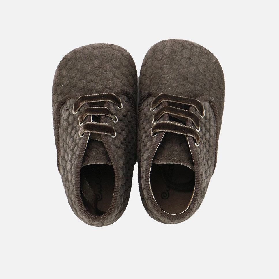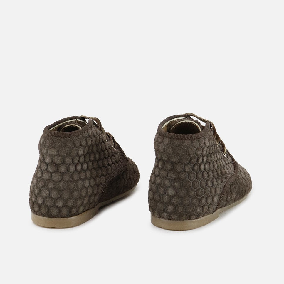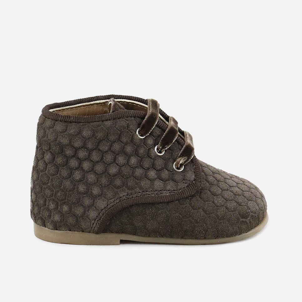 Los zapatitos para los pequeños pies, más bonitos del mundo. Botita CUCADA de corte clásico, con el toque especial que tanto nos gusta. Su piel grabada y cintas de terciopelo la convierten en un modelo perfecto para lucir y que va con todo. Acompañamos los pies mientras adquieren confianza al andar, para que poco a poco se fortalezcan y desarrollen con libertad pero protegiéndoles en cada paso. Hechas en piel serraje vacuno grabado de alta calidad, con forro interior muy suave y transpirable de piel caprina. Su cierre con cintas hace que se adapten a cualquier pie. Diseñadas y fabricadas en Villena, con estilo y conservando todas las características importantes de ajuste y estabilidad de un calzado saludable para primeros caminantes. Horma amplia para dejar total libertad a sus deditos y suela plana de goma antideslizante y flexible, pero resistente a cualquier superficie. Apuesta por el calzado de toda la vida, mejorado por los avances de tantos años de tradición, para los niños de hoy en día. Calzado de calidad, es una inversión en sostenibilidad. Disponibles desde la talla 18 a la 25. Handmade in Spain with love.