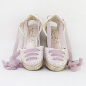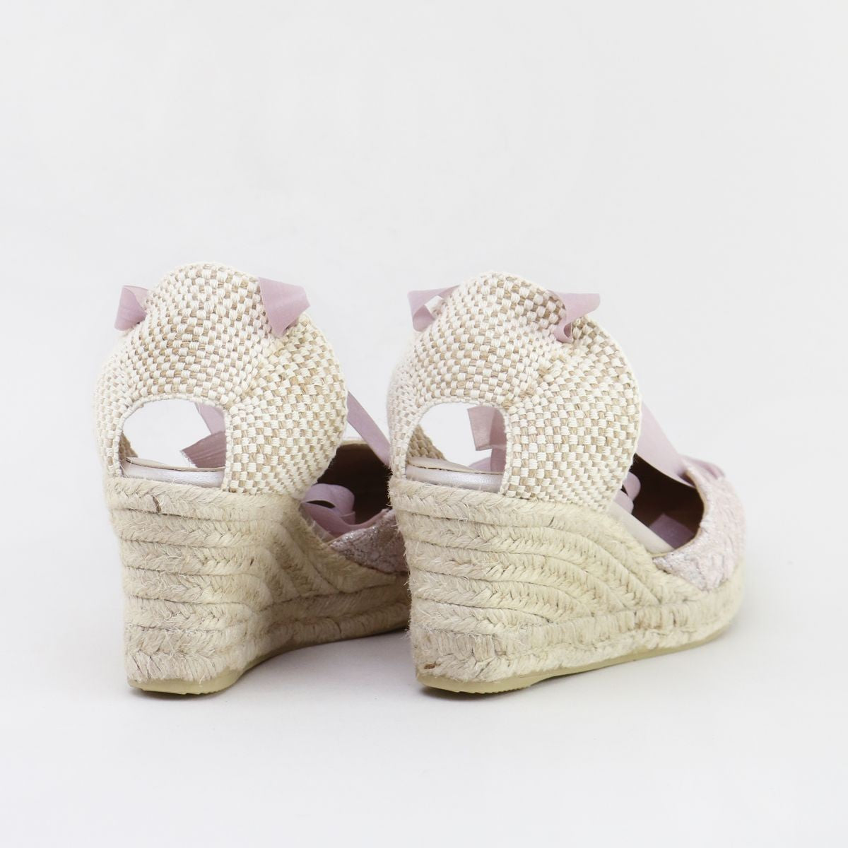 Alpargata de yute con cuña de 7cm, con cinta de organza al tono para atar.