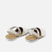 Sandalias menorquinas clásicas con cierre de velcro, en las combinaciones más trendy. Pies fresquitos y con estilo. Disponibles en varias combinaciones de tejido Glitter y en piel y serraje vacuno, con forro interior absorbente y termorregulador. Diseñadas y fabricadas en Alicante, con estilo y conservando todas las características importantes de ajuste y estabilidad de un calzado saludable. Horma especial que además de ser comodísima, favorece la seguridad y confianza de los pasos de niños y adultos. Ideales para toda la familia. Piso de goma flexible, antideslizante y resistente a cualquier superficie. Calzado cómodo, urbano, fashion, con detalles originales y de tendencia. Calzado de calidad, es una inversión en sostenibilidad. Calzan su talla real. Handmade in Spain with love. *Tallas 36 a 41 sin velcro, con tira trasera, como foto 4.