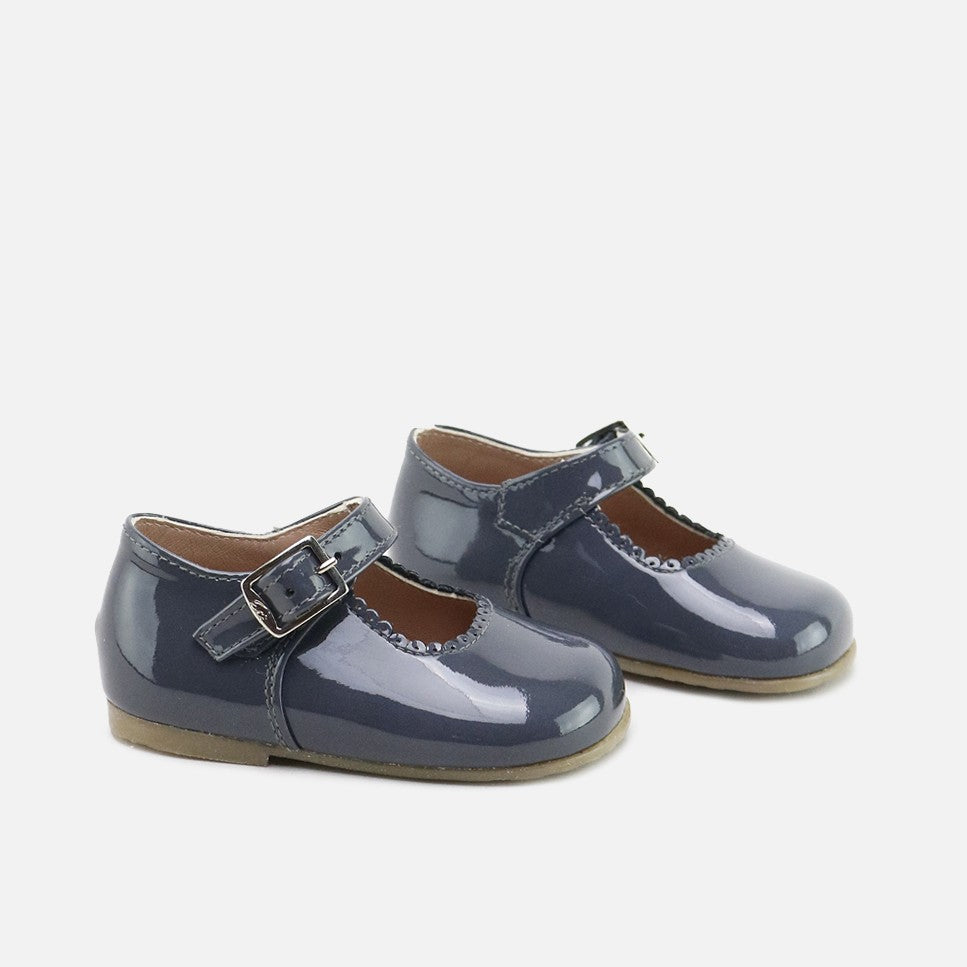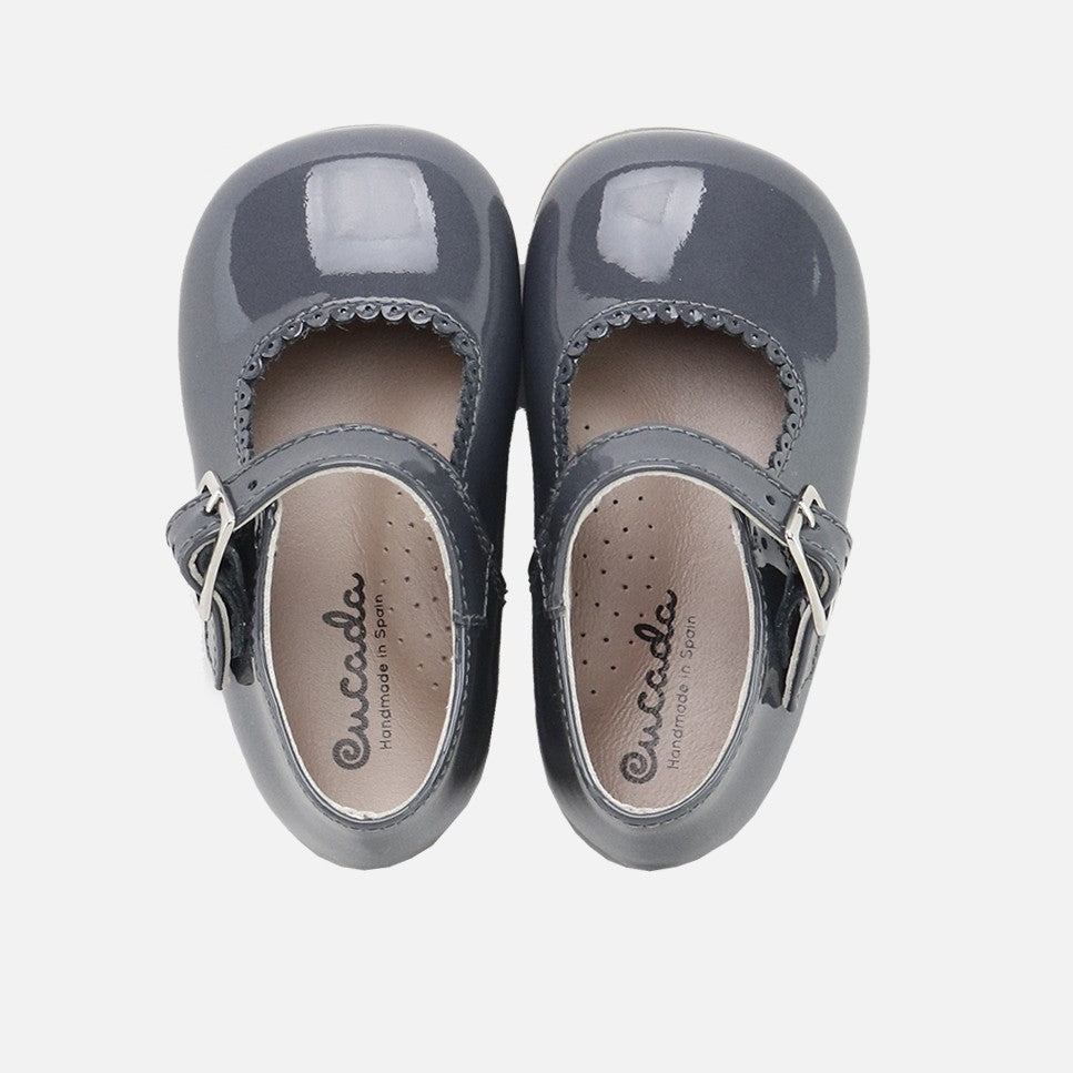El zapatito de charol que buscabas. Esta mercedita de nuestros Eliclassics vuelve cada año para vestir los pies más especiales en momentos inolvidables. En colores super combinables, levanta cualquier look, y por su piel resistente ¡no dudes en ponerselas cuando quieras! Zapato mercedes con vivo festoneado de la colección CUCADA, que acompaña los pies desde la talla 17 mientras adquieren confianza al andar, para que poco a poco se fortalezcan y desarrollen con libertad pero protegiéndoles en cada paso. Realizadas en piel charol bovino y forro de piel caprina de alta calidad, transpirante y muy suave, para que los puedan llevar con y sin calcetines. Cierre con hebilla. Diseñados y fabricados en Villena, con estilo y conservando todas las características importantes de ajuste y estabilidad de un calzado saludable para primeros caminantes. Horma amplia para dejar total libertad a sus deditos y suela plana de goma efecto piel, antideslizante y flexible. Handmade in Spain with love.
