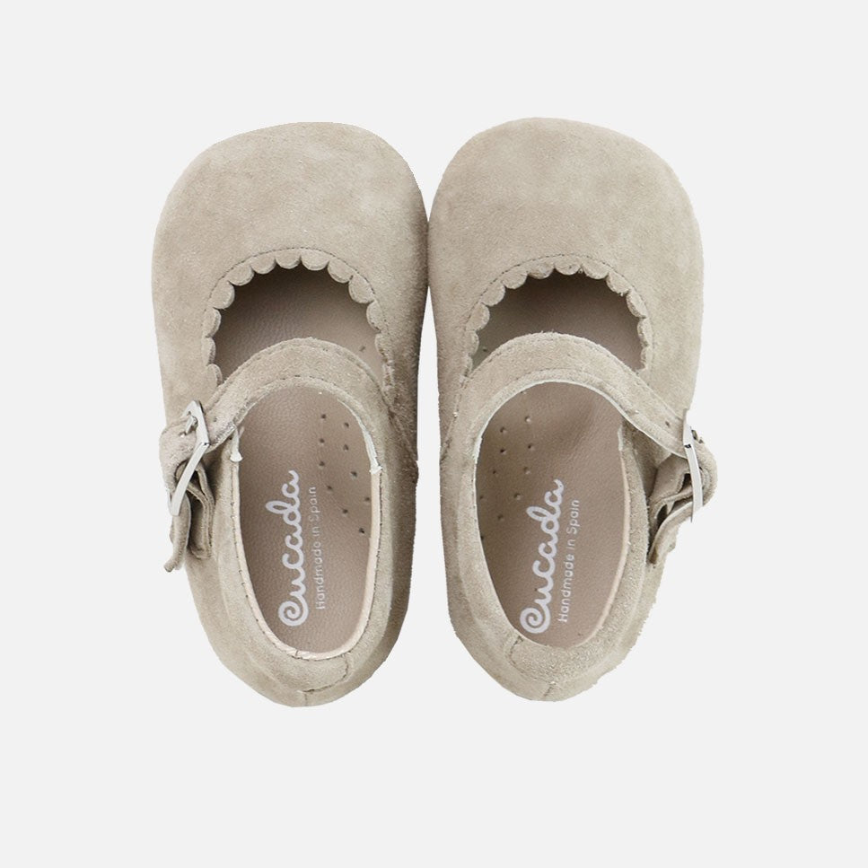La mercedita clásica. No sería necesario añadir más descripción a este modelo de nuestros EliClassics, ya que su imagen habla por sí sola. Esta temporada vuelve en colores clásicos y en tonos muy nuevos y primaverales. Dicen que es el modelo perfecto, pero nosotros lo hemos mejorado :) Zapato mercedes con vivo festoneado de la colección CUCADA, que acompaña los pies desde la talla 17 mientras adquieren confianza al andar, para que poco a poco se fortalezcan y desarrollen con libertad pero protegiéndoles en cada paso. Disponibles en varias opciones de pieles y forro de piel caprina de alta calidad, transpirante y muy suave, para que los puedan llevar con y sin calcetines. Cierre con hebilla. Diseñados y fabricados en Villena, con estilo y conservando todas las características importantes de ajuste y estabilidad de un calzado saludable para primeros caminantes. Horma amplia para dejar total libertad a sus deditos y suela plana de goma efecto piel, antideslizante y flexible. Handmade in Spain with love.