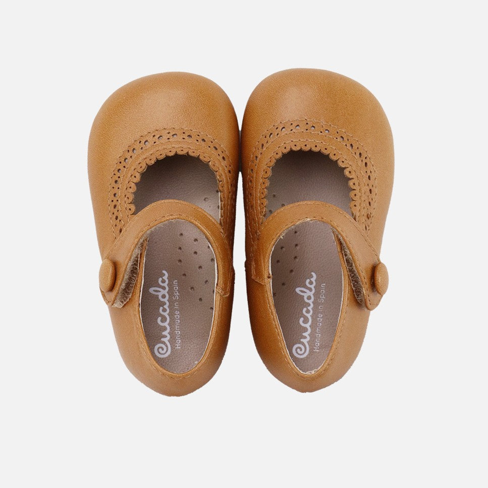 El restyling más especial de las últimas temporadas. Junto con su pareja el inglesito, hacen que nuestros Eliclassics se mantengan en el top de los zapatos más adorados año tras año. Merceditas picadas y festoneadas de la colección CUCADA, que acompaña los pies desde la talla 17 mientras adquieren confianza al andar, para que poco a poco se fortalezcan y desarrollen con libertad pero protegiéndoles en cada paso. Varias versiones disponibles en piel o ante, con forro de piel caprina de alta calidad, transpirante y muy suave. Cierre adherente para facilitar autonomía del niño. Diseñados y fabricados en Villena, con estilo y conservando todas las características importantes de ajuste y estabilidad de un calzado saludable para primeros caminantes. Horma amplia para dejar total libertad a sus deditos y suela plana de goma antideslizante y flexible, pero resistente a cualquier superficie. Apuesta por el calzado de toda la vida, mejorado por los avances de tantos años de tradición, para los niños de hoy en día. Calzado de calidad, es una inversión en sostenibilidad. Disponibles desde la talla 18 a la 25. Handmade in Spain with love.