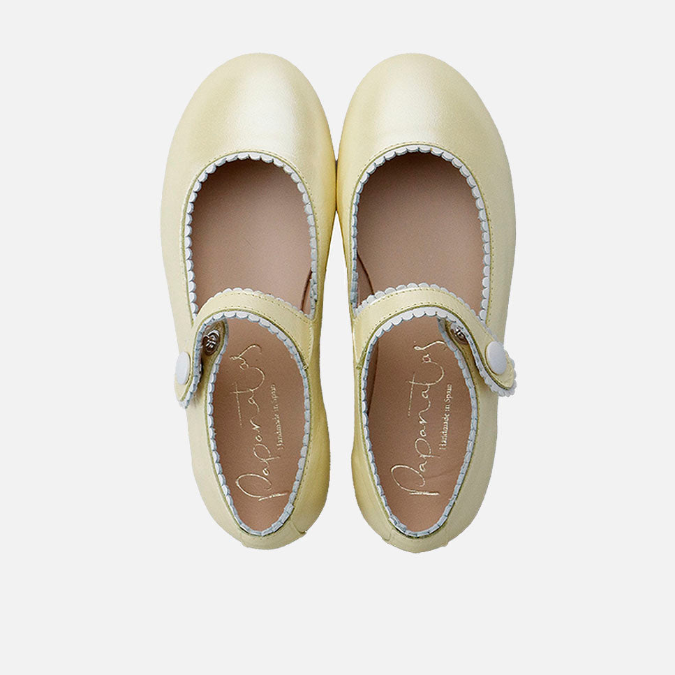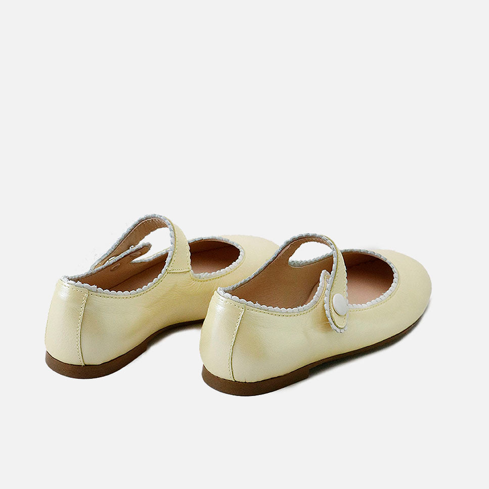 Merceditas piel amarilla con vivo en beig Papanatas | Eli 1957