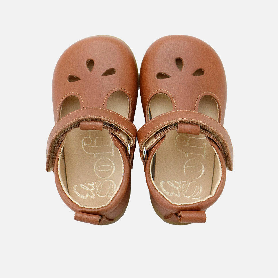 Pepitos barefoot picados lagrimas piel cathay castaña Elisoft | Eli 1957