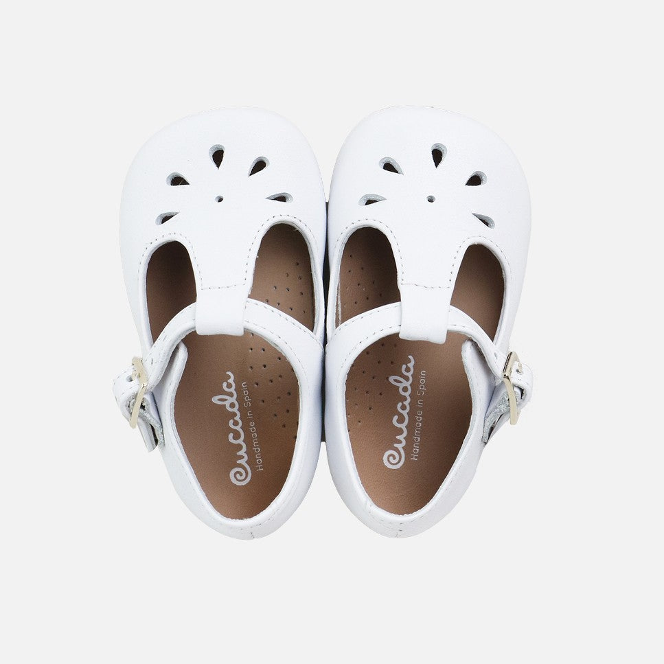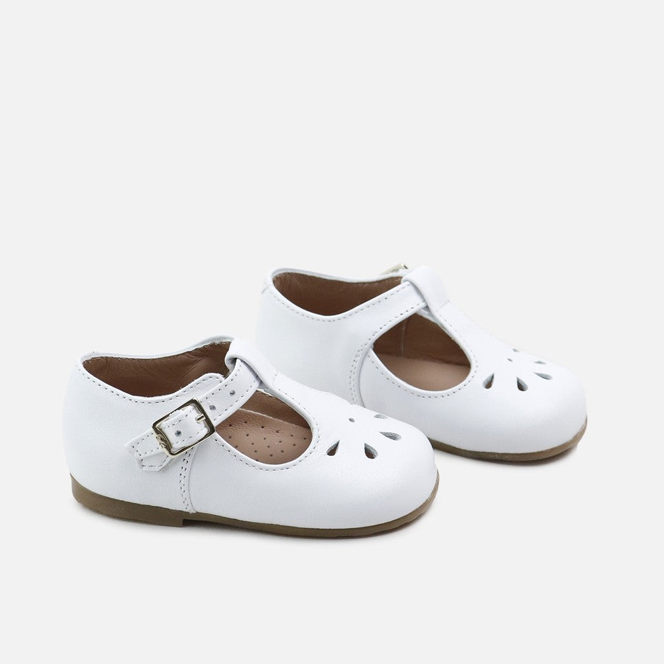 El calzado ideal para sus primeras experiencias. Nueva versión del clásico zapato Pepito con picados en pala. Acompañamos sus pasos para que vayan guapos mientras adquieren confianza, para que poco a poco sus pies se fortalezcan y desarrollen con libertad pero protegiéndoles en cada paso. Realizados en Piel o Ante y forro de piel caprina de alta calidad, transpirante y muy suave. Materiales de alta calidad que se ajustan perfectamente. Cierre con hebilla. Diseñados y fabricados en Villena, con estilo y conservando todas las características importantes de ajuste y estabilidad de un calzado saludable para primeros caminantes. Horma amplia para dejar total libertad a sus deditos. Con suela plana de goma, flexible y antideslizante, pero resistente a cualquier superficie. Apuesta por el calzado de toda la vida, mejorado por los avances de tantos años de tradición, para los niños de hoy en día. Calzado de calidad, es una inversión en sostenibilidad. Handmade in Spain with love.