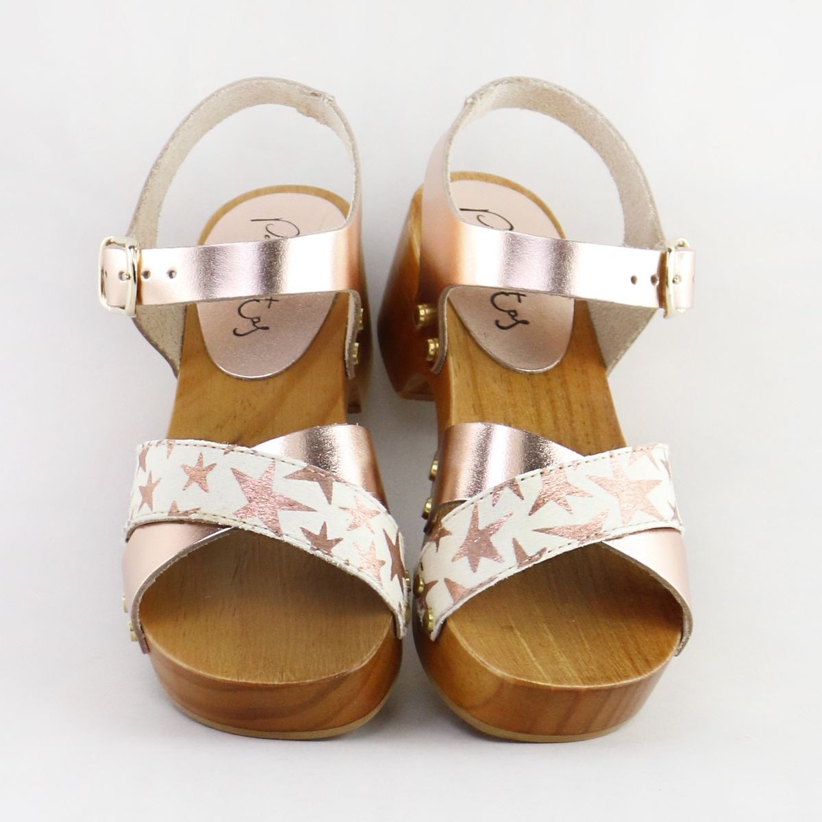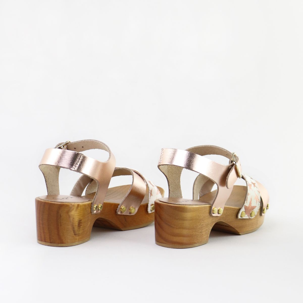 *Suela de madera ligera y tacón de zueco, con base de goma antideslizante.