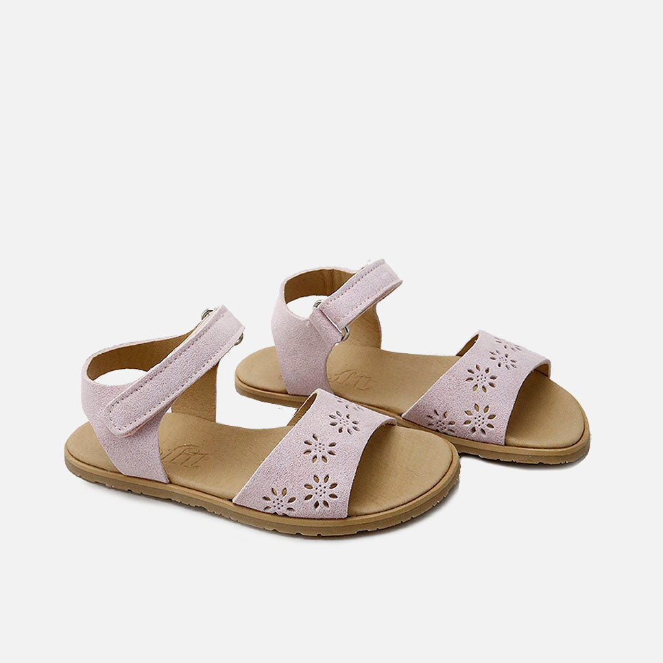 Sandalias barefoot piel rosa flores troqueladas Elisoft | Eli 1957