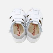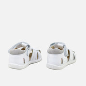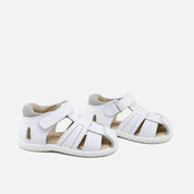 Elige nuestra línea Eli Basic para acompañar sus pasos con calidad y diseño al mejor precio. La mejor opción para que se muevan libremente tanto en interior como en exterior, respetando el desarrollo y su confianza para no parar! Guían el movimiento, la flexibilidad y la resistencia. Sandalias todoterreno de diseño estilo cangrejera, su puntera y talón cerrados le dan mucha seguridad a los peques en sus aventuras del día a día. Hechas en piel resistente con forro interior transpirable, termorregulador y antibacteriano. Su color Blanco con acolchado de serraje Perla combina con todo, el cierre con velcro hace que se adapten a cualquier pie y su plantilla acolchada les da ese confort para que no se las quieran quitar! Diseñadas y fabricadas en Alicante, con estilo y conservando todas las características importantes de ajuste y estabilidad de un calzado saludable para primeros caminantes. Horma amplia para dejar total libertad a sus deditos y suela redondeada de goma resistente, antideslizante y flexible. Handmade in Spain with love.