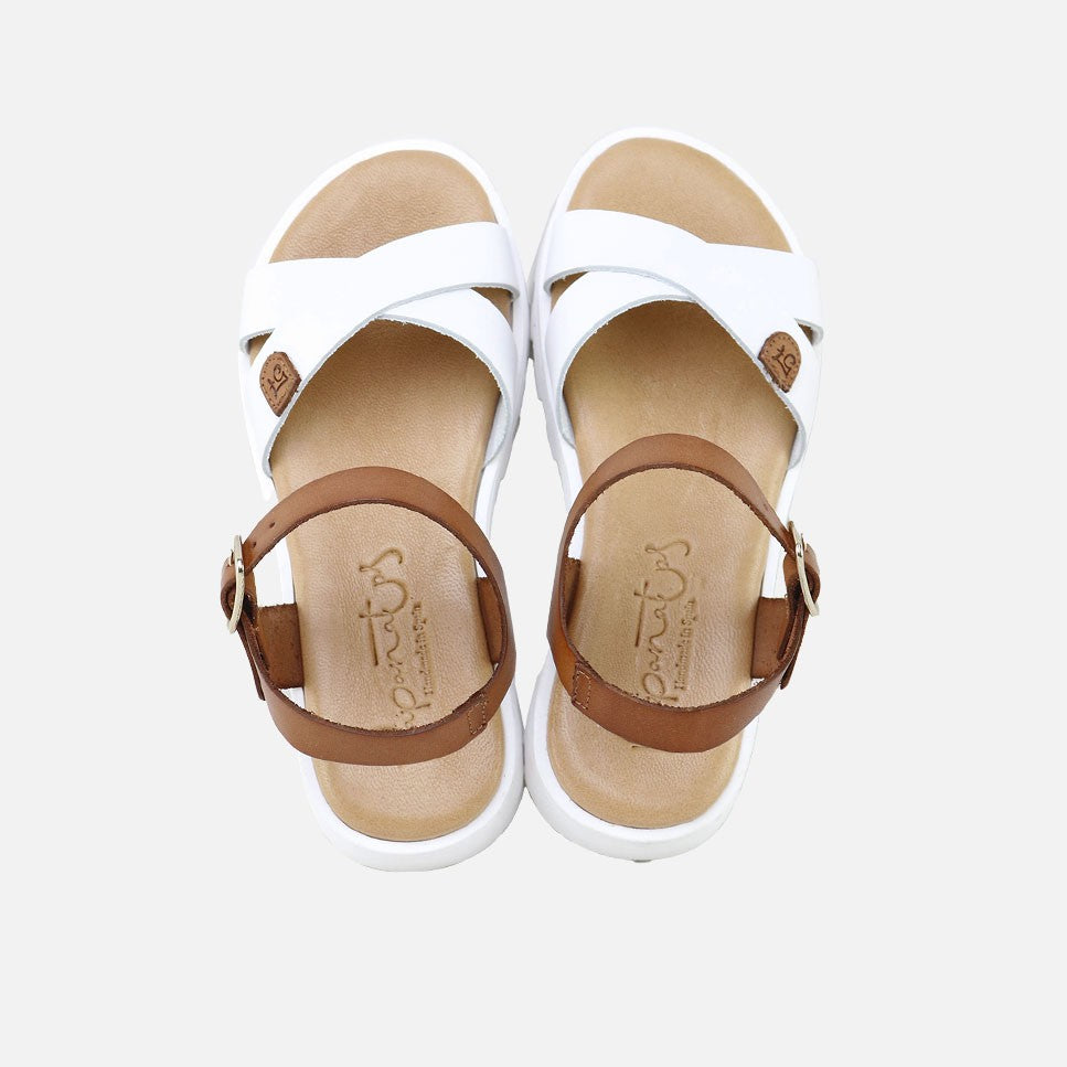Disfruta de una comodidad extrema con las sandalias de la línea GEL de nuestra colección PAPANATAS. Este modelo con tiras de piel cruzadas y talón con hebilla, tiene todas las papeletas para ser tu aliado frente a las altas temperaturas. Un modelo perfecto para compartir niñas y mamás. Hechas en piel vacuna natural, con plantilla acolchada y comodísima de piel bovina transpirable. Diseñadas y fabricadas artesanalmente en Alicante con materiales de alta calidad. Piso de caucho muy ligero, flexible, antideslizante y resistente a cualquier superficie. Calzado de calidad, es una inversión en sostenibilidad. Calzan su talla real. Handmade in Spain with love.
