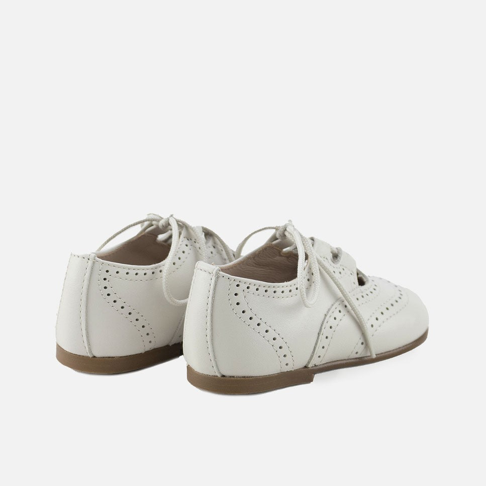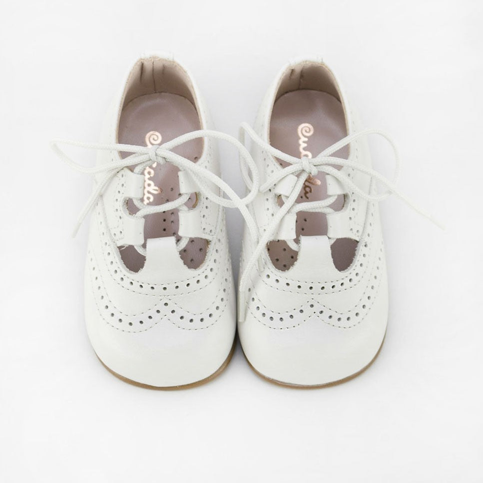 Nuestro clásico zapatito gales de la colección CUCADA para primeros pasos. En esta versión sin lengüeta, son ideales para Primavera/Verano con o sin calcetín. Diseño clásico con la horma perfecta para cualquier ocasión. Fabricados en Napa vacuna y forro interior transpirable de piel. Disponibles en varios colores. Su cierre con cordones hace que se adapten a cualquier pie. Disponibles desde la talla 17 a la 25. Diseñados y fabricados en Villena, con estilo y conservando todas las características importantes de ajuste y estabilidad de un calzado saludable para primeros caminantes. Horma amplia para dejar total libertad a sus deditos y suela plana de goma efecto piel, antideslizante y flexible. Handmade in Spain with love.