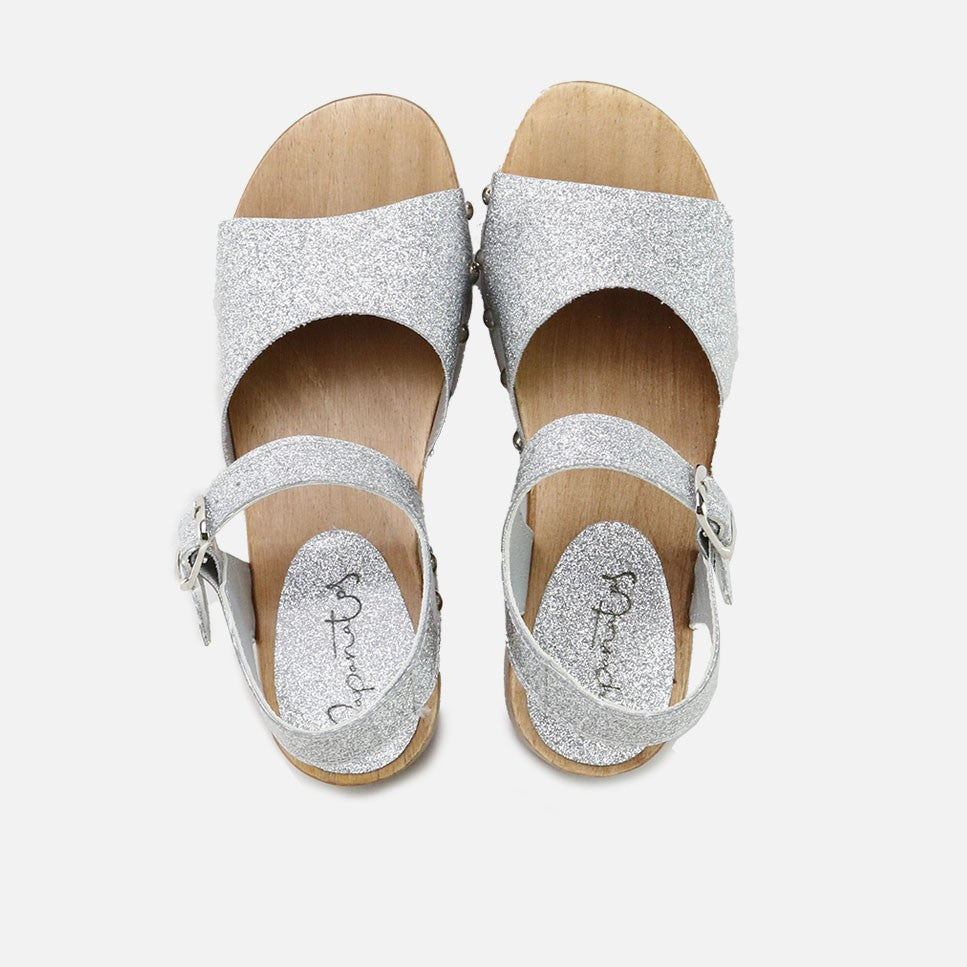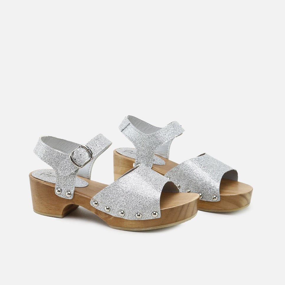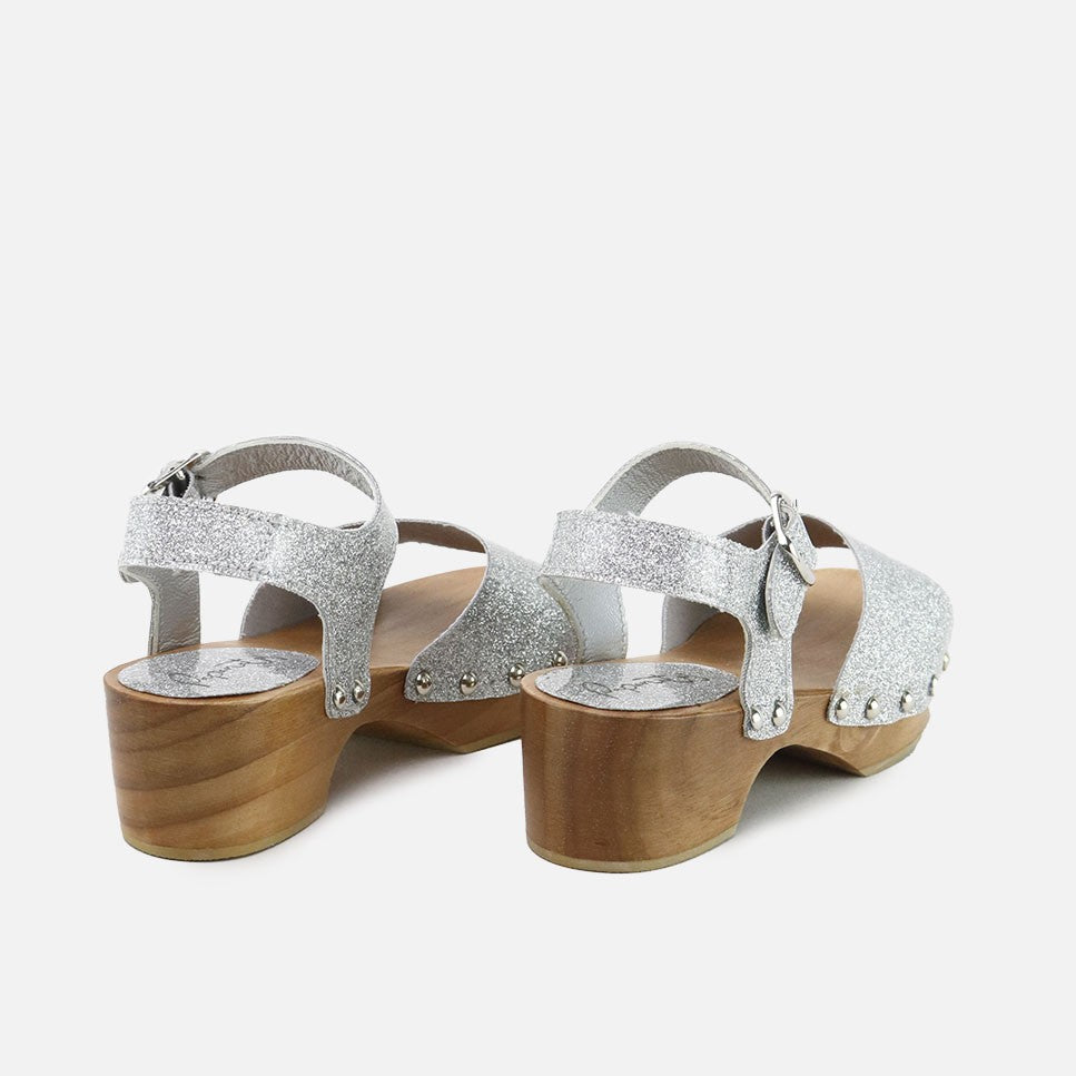 Zueco de stardust. Suela de madera ligera y tacón de zueco. Fabricado en España con materiales de alta calidad.